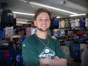 Sean is one of our Assistant Managers at Wrigleyville Sports and has been working here since March 2023! Originally from Springfield, Illinois, he first became a Cubs fan because of his grandmother. She was a lifelong fan and inspired Sean to pursue a sports related career, sparked his love for the Cubs, and passion for sports in general. As a business that values family above all, we absolutely love this story!
